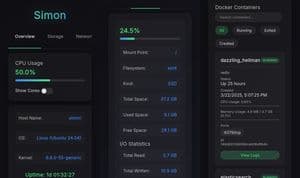 SimonMinimal, web-based system monitor with alerts and Docker insights—all bundled into a single binary GitHub2025